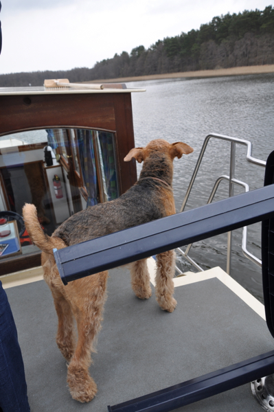 Danach ging es wieder ein ganzes Stück des gestrigen Weges zurück bis nach Mirow. Das Wetter spielte heute ungleich besser mit. Ab und zu lugte sogar die Sonne verstohlen aus einer dünnen Hochnebelschicht. So verbrachten wir den Großteil der Fahrt auf dem Deck. Die unvermeidliche Kaffeepause verbrachten wir, nach erfolgreichem Ankermanöver, mitten auf dem Labussee.