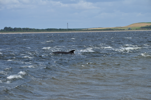 Tatsächlich sahen wir schon als wir unser Womo parkten am Strand eine Schar Menschen mit gezückten Fotoapperaten und direkt davor blitzten aus den Wellen immer wieder Delphinrücken und Schwanzflossen auf. Wie wir später erfuhren handelt es sich um eine Schule des "großen Tümmlers", wie man ihn auch aus der Flipper Serie oder vielen Delphinarien kennt, allerdings ein wenig größer, da sie aufgrund der übliche Temperaturen im Meer rund um Schottland eine viel dickere Speckschicht besitzen, als ihre Artgenossen in südlicheren Meeren.